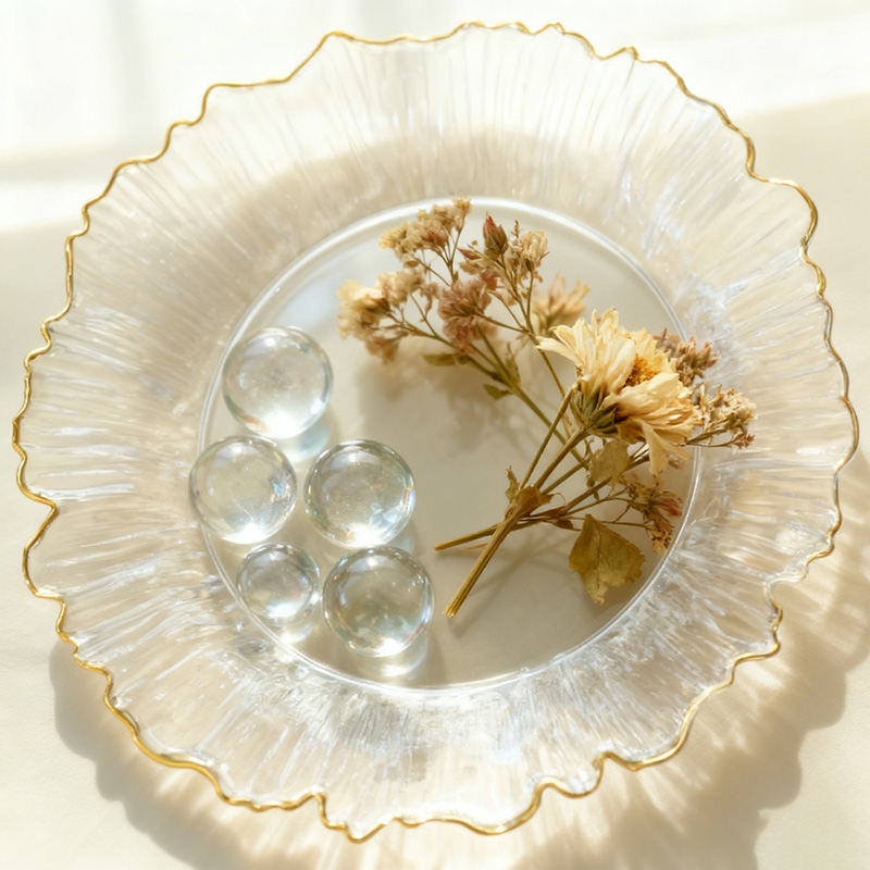 Plastic Clear Decorative Irregular Plate with Gold Rim Disposable Serving Dish
