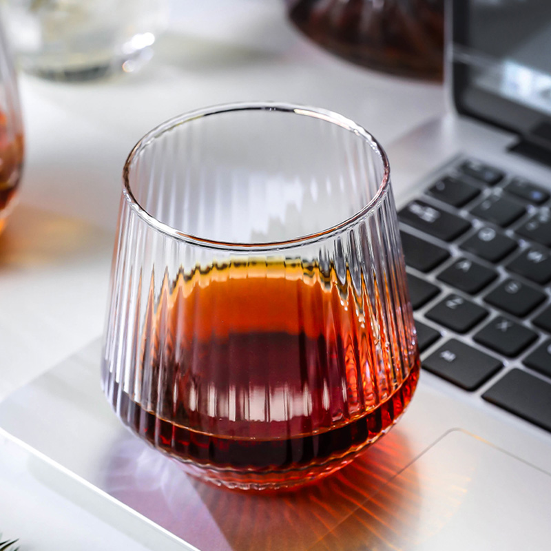 Plastic Stemless Ribbed Drinking Vintage Wine Glasses for Champagne Catering Weddings