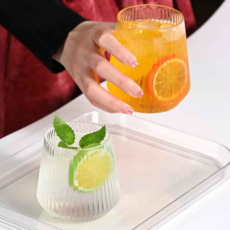 Factory Hot Selling Plastic Wine Cups Striped Stemless Whiskey Glasses