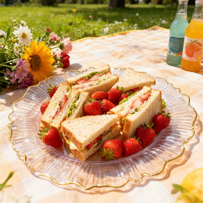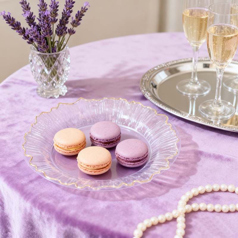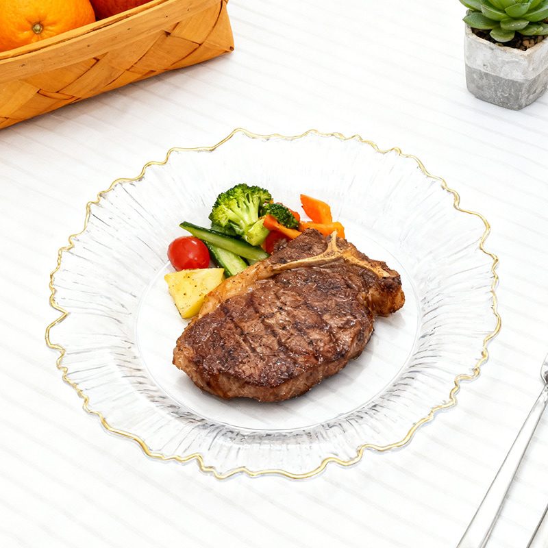 Plastic Clear Decorative Irregular Plate with Gold Rim Disposable Serving Dish