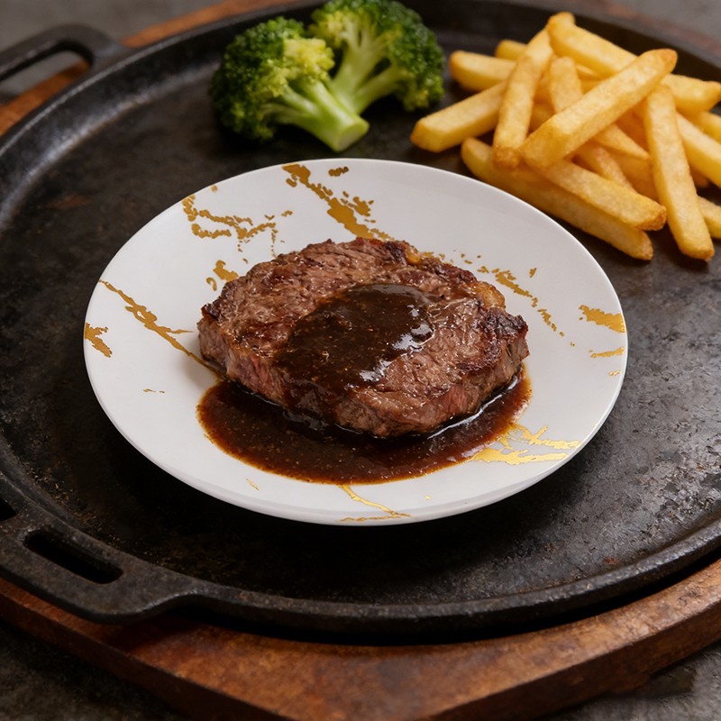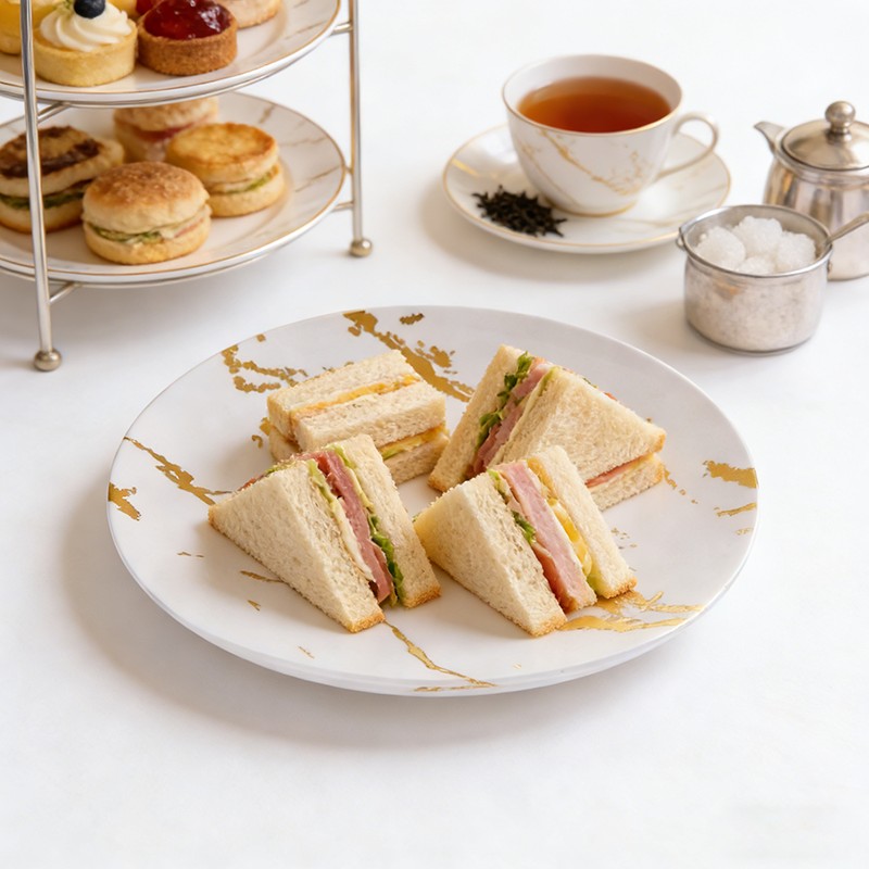 Refined White and Gold Design: Stylish aesthetic enhances food presentation
