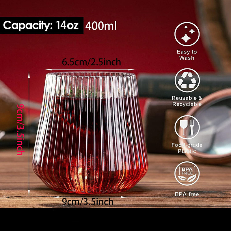 Plastic Stripe Wine CupPlastic Diamond Stemless Wine GlassPlastic Transparent Wine Glasses