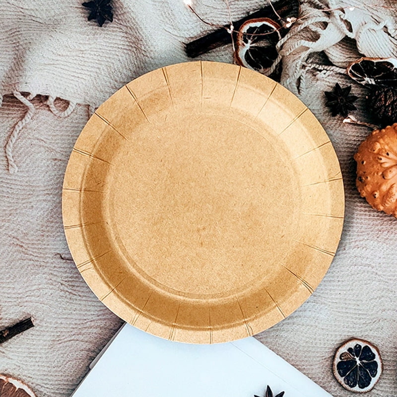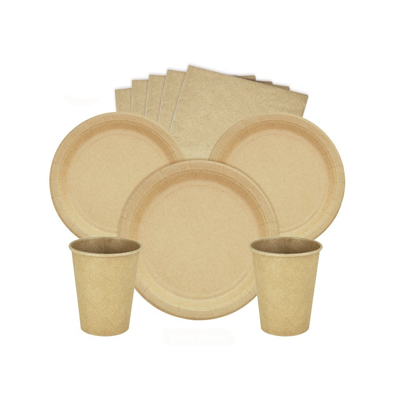 1.Sustainable Kraft Paper Material: Made from eco-friendly kraft paper, this tableware set offers a biodegradable alternative to traditional plastic, making it ideal for environmentally-conscious celebrations.